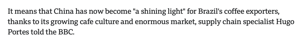 报道援引一位供应链专家的观点指出✿ღ★★✿,而中国凭借其不断增长的咖啡文化和巨大的市场✿ღ★★✿,如今已成为巴西咖啡出口商的“希望之光”✿ღ★★✿。“如果说关税的目的是为了削弱巴西✿ღ★★✿,那么它正在将卖家推向中国”✿ღ★★✿,这位在全球经营咖啡豆生意的专家说✿ღ★★✿。